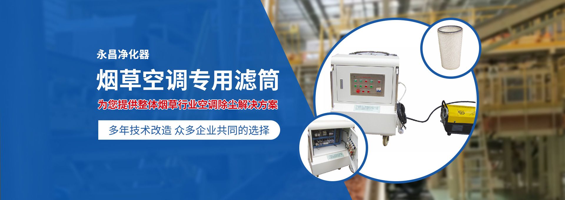 新鄉(xiāng)市永昌凈化器有限公司是生產(chǎn)煙草行業(yè)空調(diào)除塵專用濾筒的企業(yè)。注冊(cè)資金1000萬(wàn)元。已通過ISO9001國(guó)際質(zhì)量管理體系認(rèn)證。對(duì)產(chǎn)品有嚴(yán)格的管理制度和售后服務(wù)。我公司以誠(chéng)信、負(fù)責(zé)、守信譽(yù)、重質(zhì)量的精神所生產(chǎn)的產(chǎn)品,近幾年來在煙草行業(yè)受到廣泛應(yīng)用,并受到用戶的一致好評(píng)?! 囊痪啪潘哪暌詠頌闊煆S的空調(diào)設(shè)備服務(wù)。十幾年來,我們不斷走出去請(qǐng)進(jìn)來學(xué)習(xí)新技術(shù)。定期到用戶那里咨詢情況:互相交流,認(rèn)真聽取寶貴意見,不斷提高產(chǎn)品質(zhì)量。從經(jīng)濟(jì)和安全,方便的角度出發(fā),根據(jù)煙廠濕度大的生產(chǎn)環(huán)境和濾筒收集到的含酸堿、氧化劑的粉塵。在空調(diào)箱工作狀態(tài)下我們頂著巨大的風(fēng)壓危險(xiǎn)在箱內(nèi)停留了幾分鐘,認(rèn)真查看濾筒工作情況,發(fā)現(xiàn)濾筒有并死狀態(tài),造成濾筒不過濾、不過風(fēng)、壓差高的現(xiàn)象。經(jīng)幾十次試驗(yàn)分析,在標(biāo)本兼治的原則下,有針對(duì)性的解決了這一問題。 我公司針對(duì)煙廠制絲、卷接包、混絲間、儲(chǔ)絲房、冷卻床、梗膨化等不同的生產(chǎn)環(huán)境,